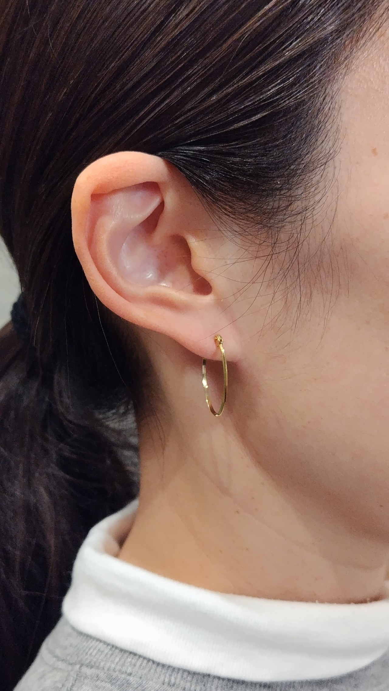 華奢なシルエットの楕円型フープピアス。